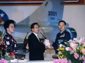 本人就任總統後,多次到空軍部隊視導,在與空軍官兵的接觸中,發現空軍官兵弟兄們認真負責、熱情開朗的一面;今天,再度看到各位士氣高昂、軍容壯盛,充分展現現代軍人活力旺盛、充滿自信的特質,本人心中有著無比的振奮與欣慰,這是我們空軍官兵的驕傲,全體國人亦同感光榮。