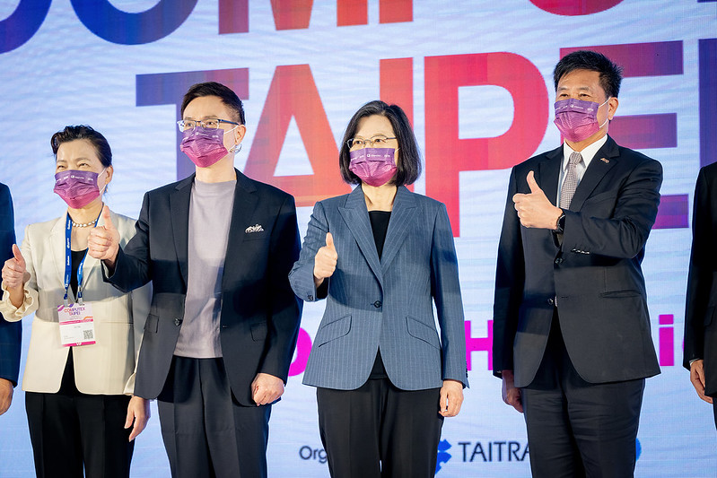 蔡英文總統今(24)日上午出席「2022年台北國際電腦展COMPUTEX開幕典禮」,說明今年即將成立數位發展部,加速推動國家數位發展政策,讓臺灣在數位發展方面的優勢能持續領先世界。她也期待,未來政府和民間持續攜手合作,全力推動產業數位轉型,帶動經濟發展,共同打造臺灣科技產業的下一個黃金10年。