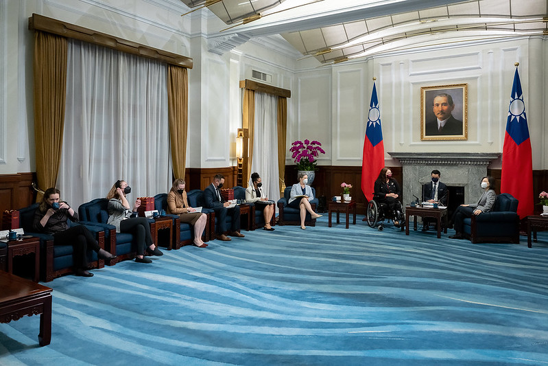 訪團由外交部長吳釗燮及「美國在台協會」(AIT)台北辦事處處長孫曉雅(Sandra Oudkirk)陪同,前來總統府晉見總統,國家安全會議秘書長顧立雄也在座。