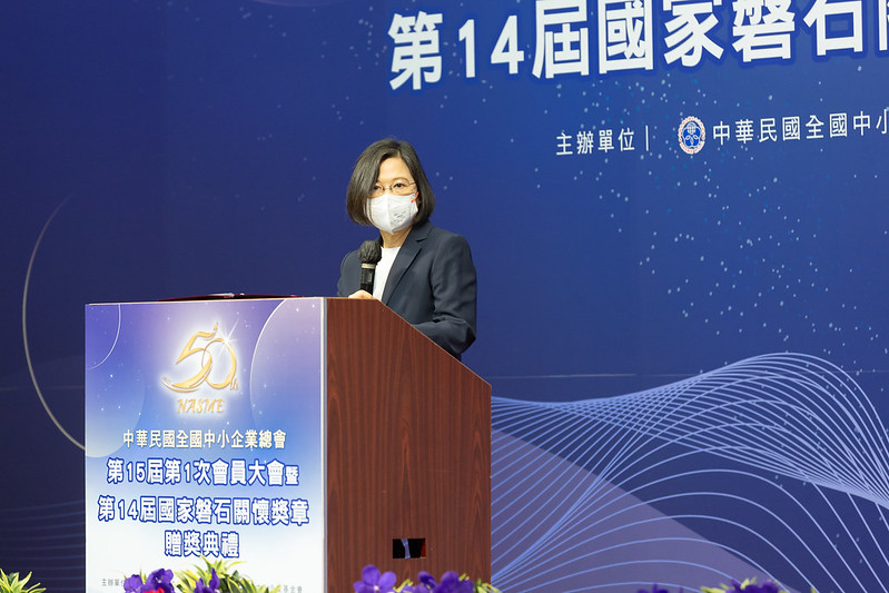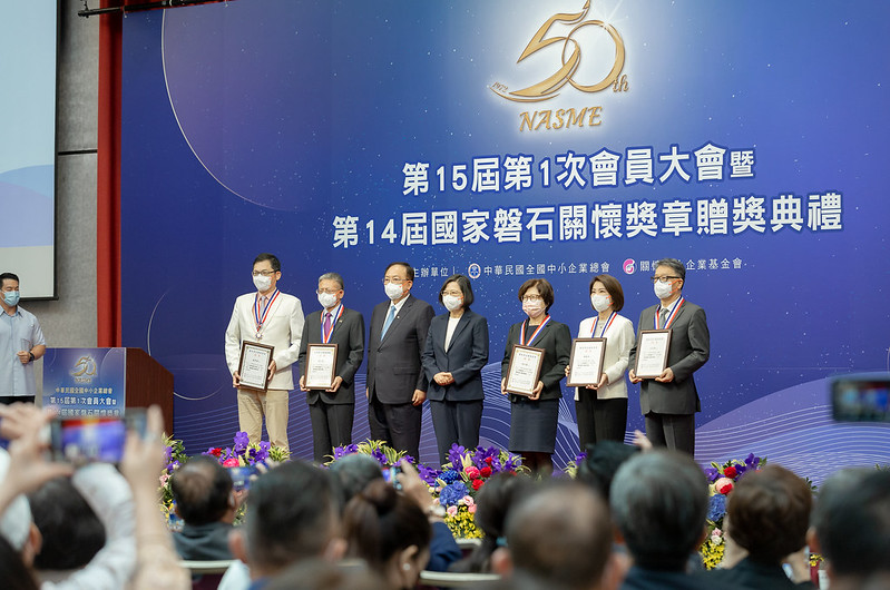 總統也指出,面對後疫情時代,國際市場的變化,以及供應鏈的快速重組,政府會持續推動「六大核心戰略產業」、「中小企業加速投資行動方案」,積極協助中小企業的轉型升級。