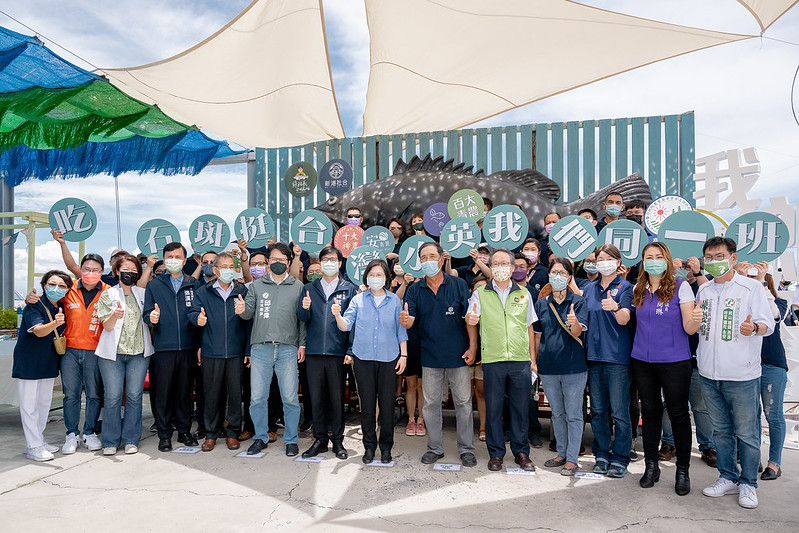 總統說,今天現場還有來自彌陀區、興達港區漁會、養殖協會的夥伴,以及相關通路的業者先進。大家都為了石斑魚產業的發展全力在拚,讓臺灣優質的水產品,能夠在國際發光發亮,她要特別感謝大家的努力。