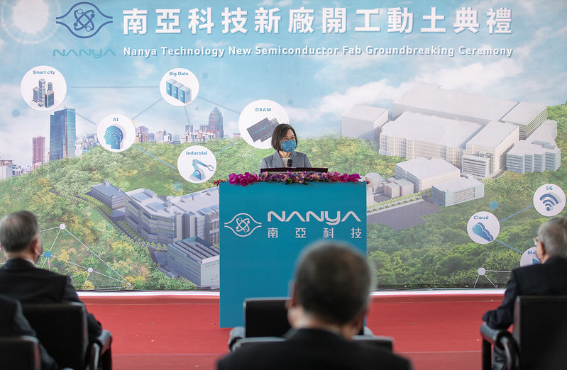 蔡英文總統今(23)日上午出席「南亞科技新廠開工動土典禮」時表示,面對2050革命性的淨零轉型,她要鼓勵國內的大型產業,把低碳、零碳的挑戰轉化為商機,扮演業界領頭的角色,讓上下游供應鏈都能更進步。她也強調,希望未來能把臺灣打造成為亞洲「半導體先進製程中心」,持續提升臺灣在全球產業鏈的關鍵地位;臺灣要邁向疫後正常生活的新階段,不只要持續拚防疫,更要繼續拚經濟,只要中央和地方攜手合作,一定能夠度過挑戰,創造更好的未來。