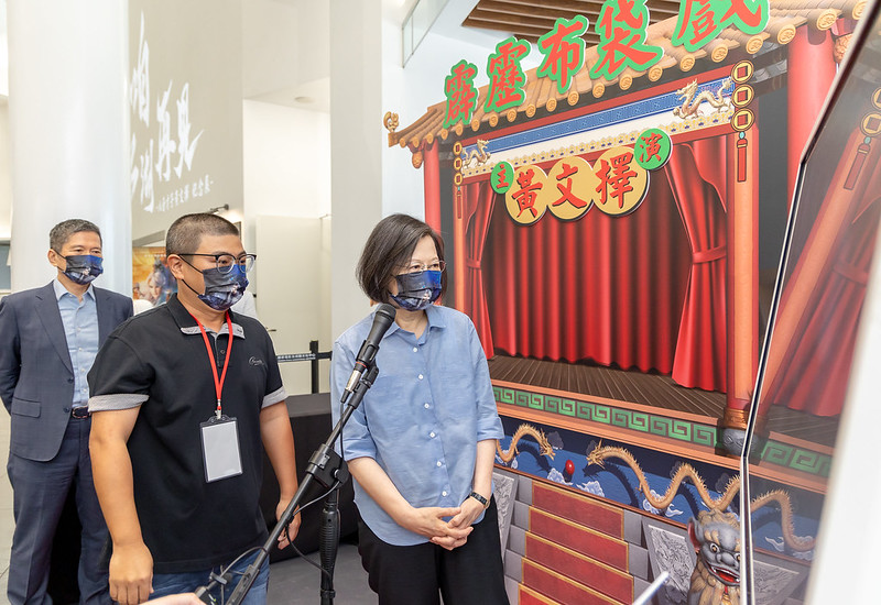 蔡英文總統昨(5)日上午前往國家電影及視聽文化中心參觀《咱 江湖再見》八音才子黃文擇紀念展。總統表示,這幾年來,政府很重視也很支持布袋戲的發展,會持續推動布袋戲的傳承和創新。我們一起努力,讓布袋戲可以一代一代傳下去,成為臺灣人一代又一代共同的資產。