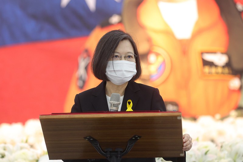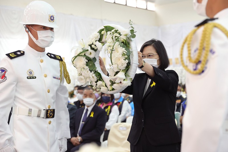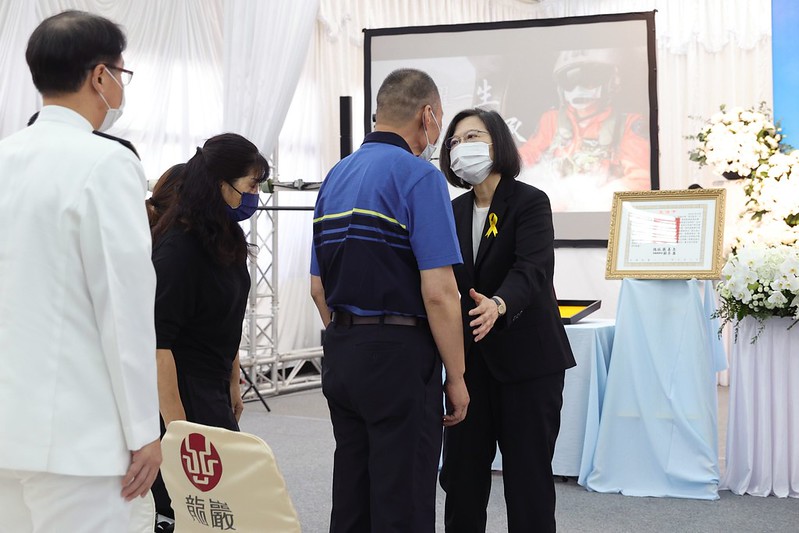 蔡英文總統今(8)日上午前往桃園市立殯儀館親頒褒揚令,表彰殉職海軍士官長劉尚鈞捍衛海疆及守護國家的付出及貢獻。