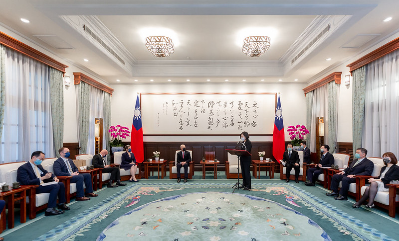 訪團由外交部長吳釗燮及「美國在台協會」(AIT)台北辦事處處長孫曉雅(Sandra Oudkirk)陪同,前來總統府晉見總統,國家安全會議秘書長顧立雄也在座。
