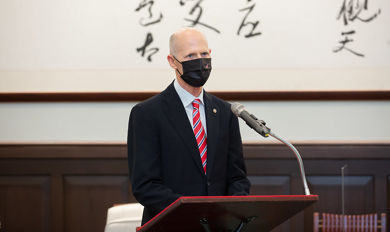 史考特參議員說,以過去從商及佛羅里達州前州長的經驗,他認為,發展臺美貿易關係是非常重要的一件事情,這讓兩國人民都有機會享受到繁榮的生活。他感謝臺灣政府持續推動經濟發展;作為參議院商業委員會的一員,此行也希望能夠與總統及臺灣商界領袖對話,討論如何增進雙邊貿易關係。