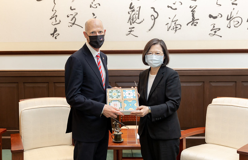 蔡英文總統今(8)日上午接見「美國聯邦參議員史考特(Rick Scott)訪問團」時指出,史考特參議員為第一位訪問「駐立陶宛台灣代表處」的美國國會議員,展現出民主夥伴團結相挺的精神。總統也感謝其對臺灣安全議題與深化臺美經貿關係的努力,期待臺美夥伴關係更堅實緊密。