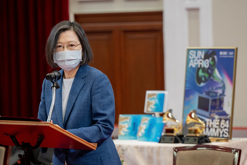 總統致詞時,首先歡迎團隊來到總統府,並恭喜李政瀚和于薇設計師,贏得葛萊美獎的「最佳唱片包裝獎」。葛萊美獎被稱作「音樂界的奧斯卡」,是全球最具影響力的音樂大獎之一。這次是臺灣首度獲得葛萊美獎,她感謝團隊把這個世界級的榮耀帶回臺灣。