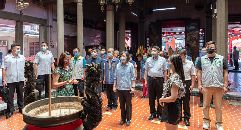 蔡英文總統今(23)日上午前往屏東縣「覺善堂」參拜,祈求風調雨順、國泰民安,並肯定屏東縣政府團隊執行效率,盼屏東持續進步,中央、地方一起努力,讓經濟和對長幼的照顧都能做好。