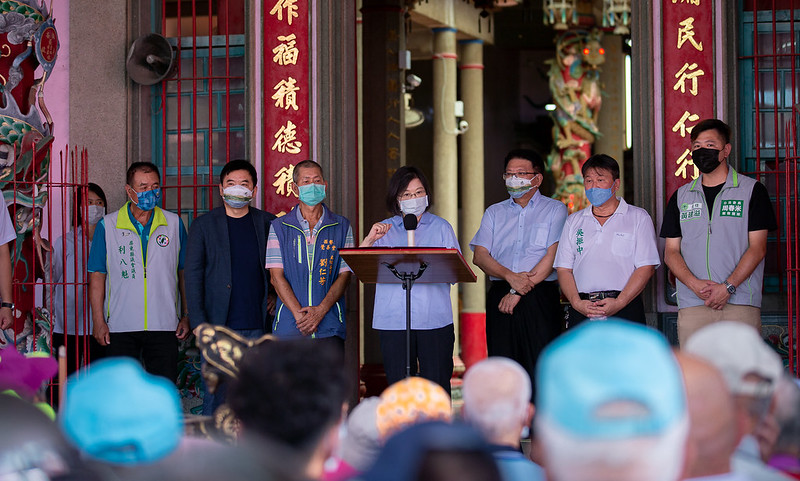 總統致詞時表示,這段時間因為疫情的關係,大家比較辛苦,她感謝屏東縣長潘孟安,將大家照顧得很好,縣府團隊非常有效率,才能將屏東的疫情很快地控制住。
