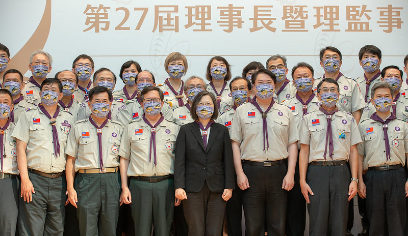 蔡英文總統今(24)日上午出席「中華民國童軍總會第27屆理事長暨理監事就職典禮」,感謝林右昌前理事長任內積極領導,為臺灣童軍運動累積豐碩成果,並期許新任理事長鄭文燦將童軍「人生以服務為目的」的精神,落實在每一個計畫項目中。總統也期勉童軍夥伴帶頭關心公共事務,讓更多年輕朋友一起關心社會的發展,為臺灣的未來帶來更多創新和改變。