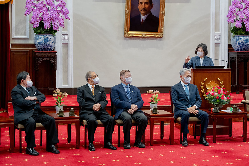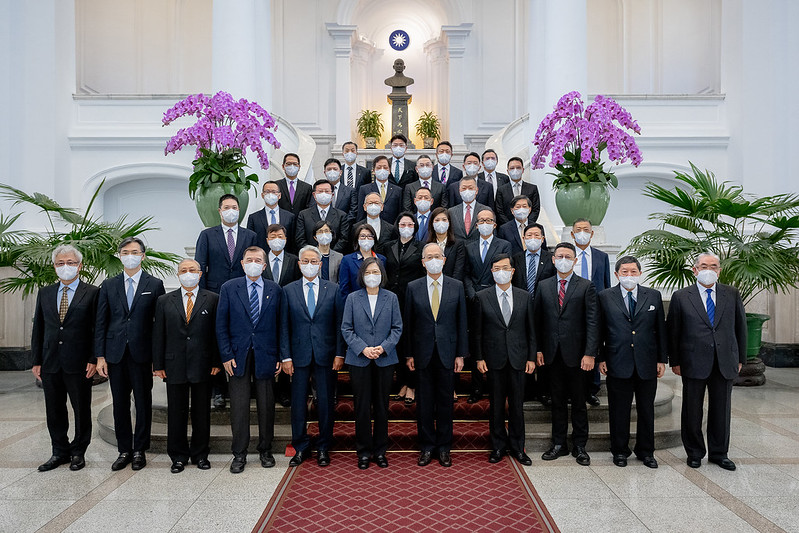 訪賓一行包括總統府資政黃茂雄,由中華民國工商協進會理事長吳東亮率領,經濟部次長陳正祺陪同,前來總統府晉見總統,總統府秘書長李大維也在座。