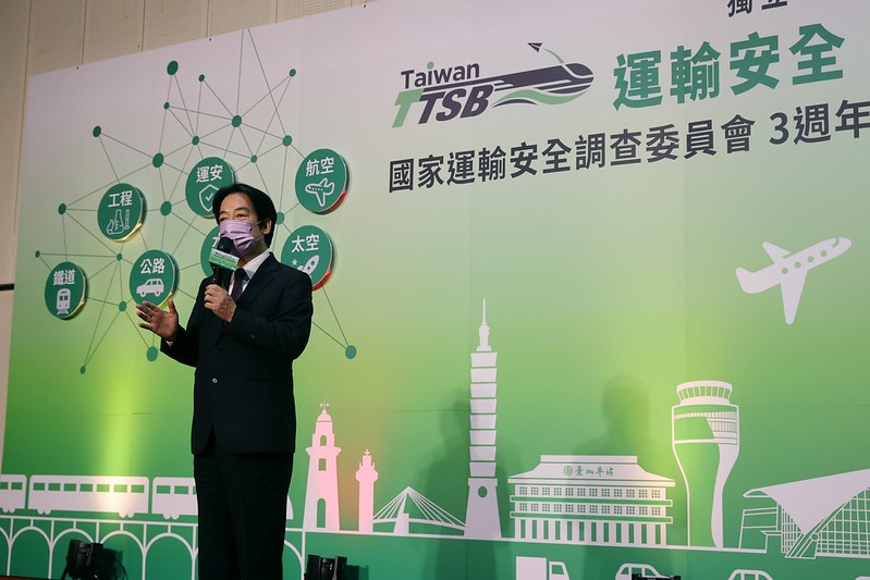 賴清德副總統今(1)日上午出席「國家運輸安全調查委員會3週年回顧與展望研討會」,肯定運安會成立3年來運用專業調查、公布資訊,也穩定民心社會。副總統並期許運安會所有同仁不忘初衷、時時精進專業;也要有任重道遠、化被動為主動的作為;同時要國際化,讓臺灣的安全水準能與國際接軌,確保臺灣的運輸安全。