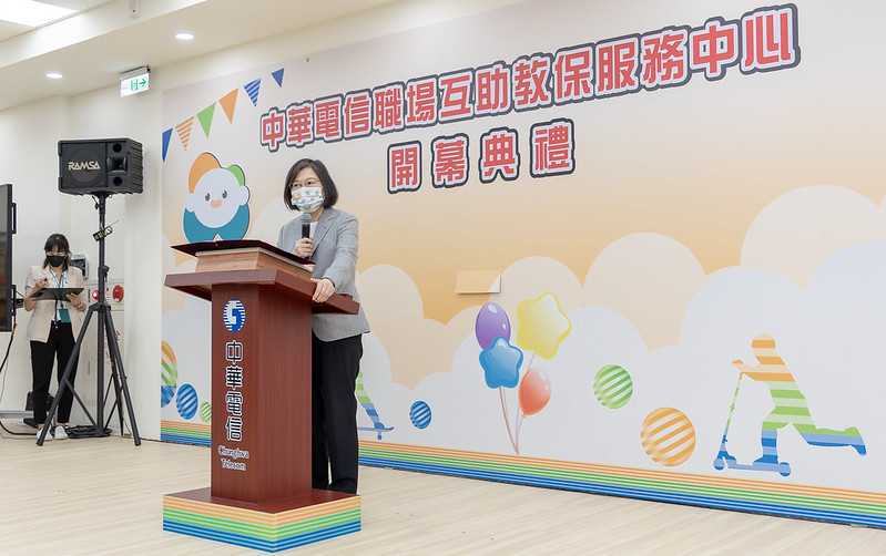 蔡英文總統今(2)日上午出席「中華電信職場互助教保服務中心開幕典禮」,肯定中華電信開辦教保中心,並盼可以帶動更多公部門及企業一起跟進,創造多元的友善職場環境,為臺灣的小朋友創造更幸福的成長環境。
