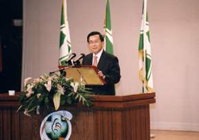 陳總統水扁先生今天出席民進黨第九屆第一次臨時全國黨員代表大會,並應邀致詞。
