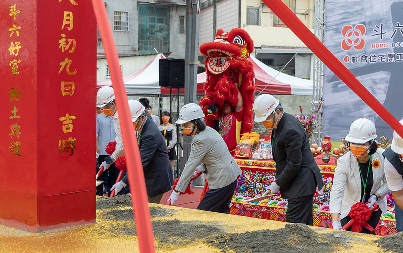 隨後,總統也與現場貴賓一同進行祝禱及開工動土儀式。包括財政部長蘇建榮、內政部次長兼國家住都中心代理董事長花敬群、雲林縣長張麗善及立法委員劉建國等亦出席是項活動。