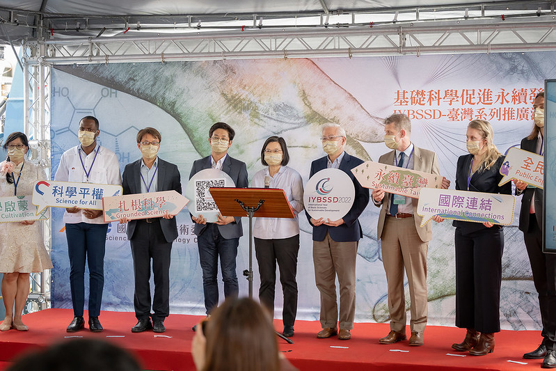 總統致詞時表示,從今年7月到明年6月,是聯合國「基礎科學促進永續發展國際年(IYBSSD)」,今天很高興和大家一起來啟動臺灣的推廣活動。上個禮拜,她才來基隆參加雞籠中元祭點燈放彩活動,這個節慶是第一號國家無形文化資產。基隆市府團隊一直很努力,讓更多的國際朋友一起了解和參與。