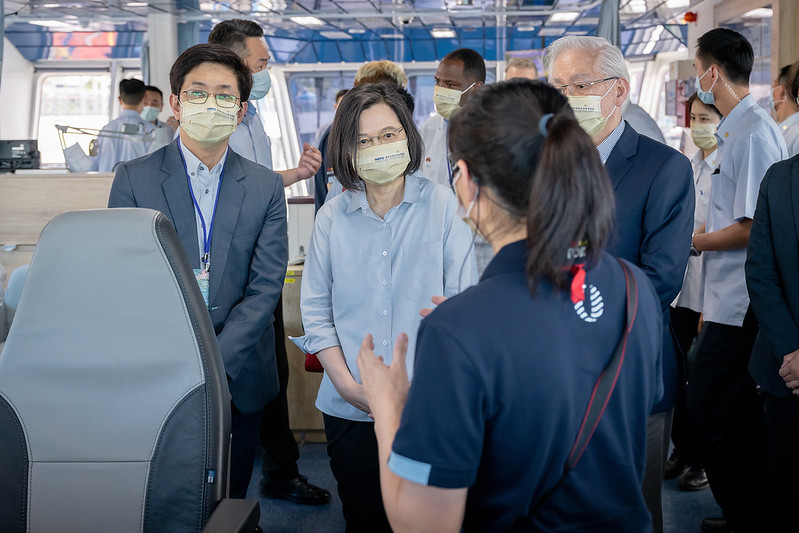 總統指出,海洋是臺灣的命脈,期待臺灣的海洋科學研究,對世界帶來更多的貢獻。因此,今天的啟動典禮選在「勵進研究船」舉辦,格外有意義。這是臺灣最大的科學研究船,負責執行臺灣周遭海域的深海探測以及水下工程作業。
