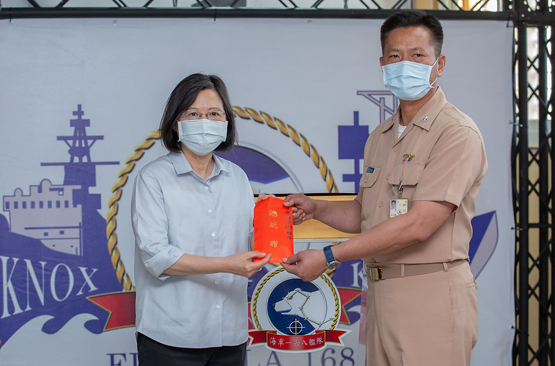 蔡英文總統今(18)日傍晚前往宜蘭蘇澳勗勉海軍艦指部168艦隊,肯定國軍在過去這段時間將平時紮實演練的成果,展現在面臨實際威脅的應處,不僅守護住海疆的安全,也維繫了區域的和平與繁榮。總統並代表全體國人,感謝國軍不分晝夜,在第一線守護國家安全,讓全民可以安心如常地渡過每一天。