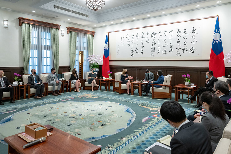 訪團一行由外交部次長曾厚仁以及美國在台協會台北辦事處處長孫曉雅(Sandra Oudkirk)陪同,前來總統府晉見總統,國家安全會議秘書長顧立雄也在座。
