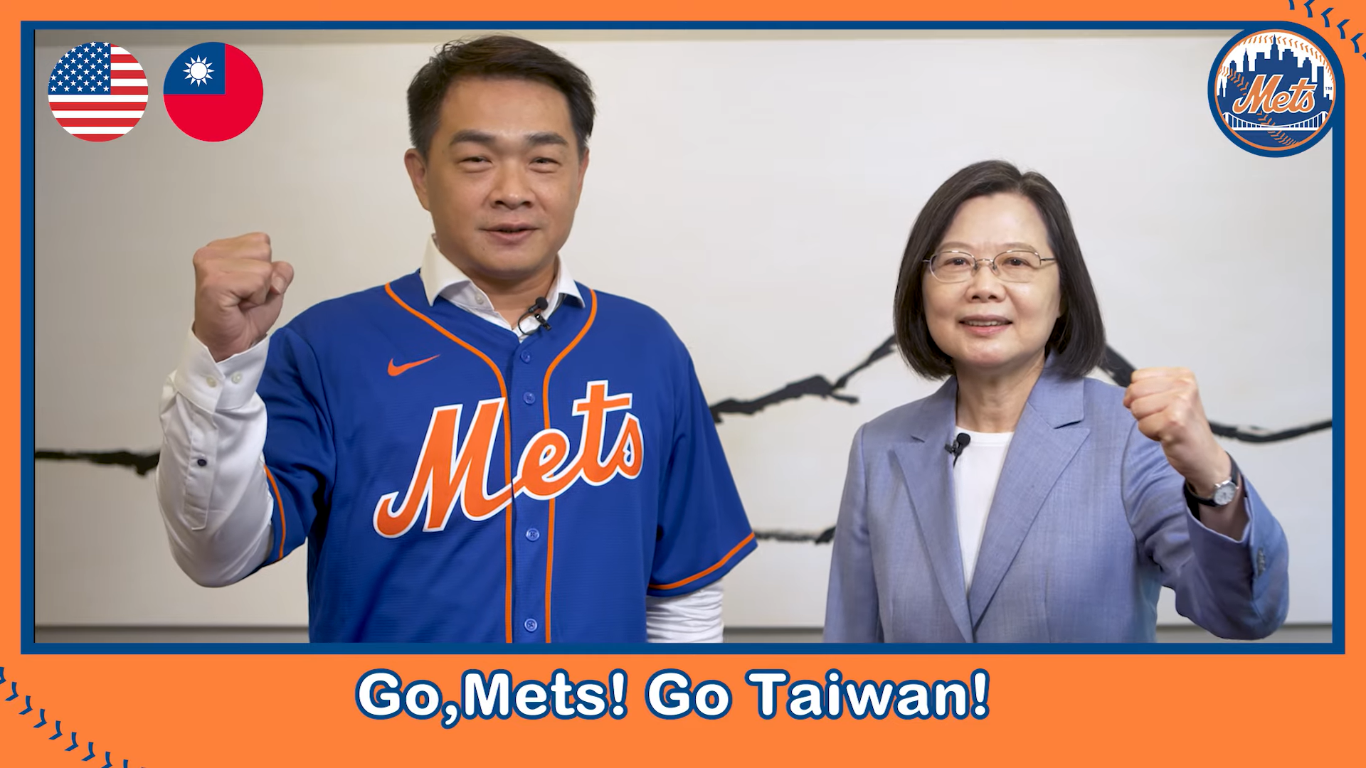 蔡英文總統今(29)日凌晨約1時20分(紐約時間28日下午約1時20分)以錄影方式為「紐約大都會台灣日」活動致詞。總統向現場球迷介紹為活動開球之「臺灣隊長」彭政閔(恰恰),並感謝美國捐贈疫苗,讓我們得以度過疫情,回到球場享受比賽。