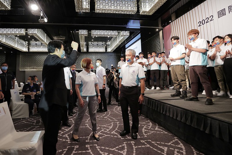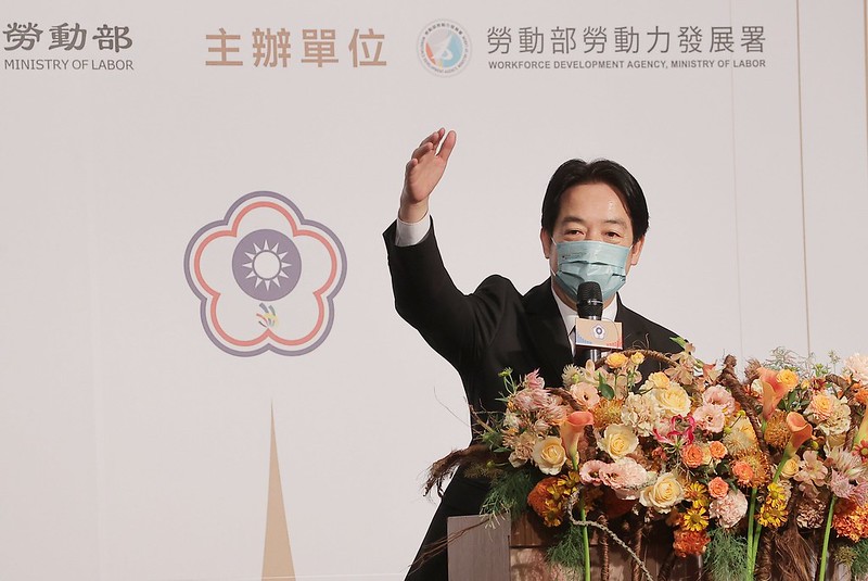 副總統致詞時表示,今天非常榮幸受到邀請,代表蔡總統前來參加「2022國際技能競賽代表團授旗典禮」,他要祝福此次代表團出征,能夠一帆風順、旗開得勝、馬到成功。