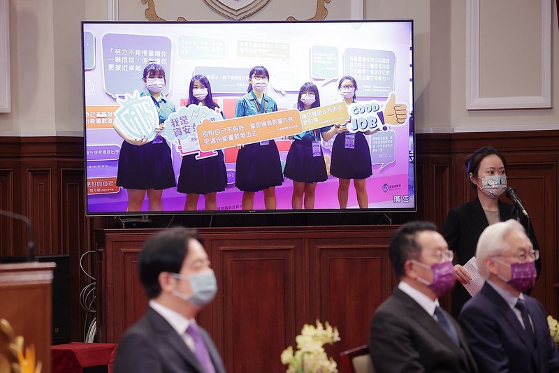 副總統首先與獲獎同學一同觀賞「2022GiCS第2屆尋找資安女婕思活動快剪紀錄」影片;隨後致詞時表示,今天他非常高興能在總統府歡迎資安女婕思。首先,他要代表蔡總統恭喜得獎同學,要在2,175位參賽者中脫穎而出,實屬不易。他也要祝福大家,經由這場賽事點燃對資安的興趣,引導大家未來在資安領域,或者是跨領域需要資安的時候,都能夠發光發熱。