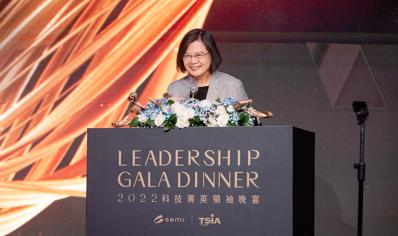蔡英文總統今(14)日晚間出席「SEMICON Taiwan 2022 科技菁英領袖晚宴」時表示,半導體產業是打造臺灣成為全球經濟主力計畫的核心,將在產官學研共同合作下,培育人才、開發技術,以維持臺灣在此領域的戰略優勢。她相信,藉由整個產業鏈的眾多企業,將能運用科技發展趨勢,讓臺灣半導體產業再創高峰。