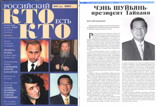 俄羅斯「人物誌」(Who’s Who)雙月刊本(九十)年第二卷刊出該國普里罕諾夫經濟學院院長Vitaly Vidyapin為俄文版「台灣之子」所撰序言。