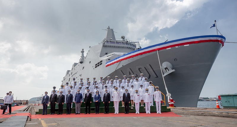 經過這幾年的努力,由臺灣自主研發、建造,第一艘萬噸級的兩棲船塢運輸艦—「玉山軍艦」,今天正式交艦。