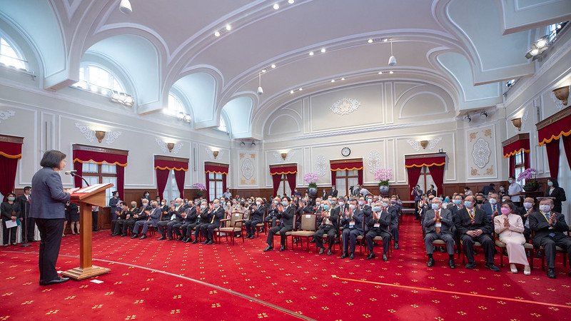 總統致詞時感謝所有資政以及國策顧問出任國政諮詢的職務,大家都是重要的社會領袖代表,謝謝大家願意為國家更盡一份心力,持續提供政府寶貴的建議。