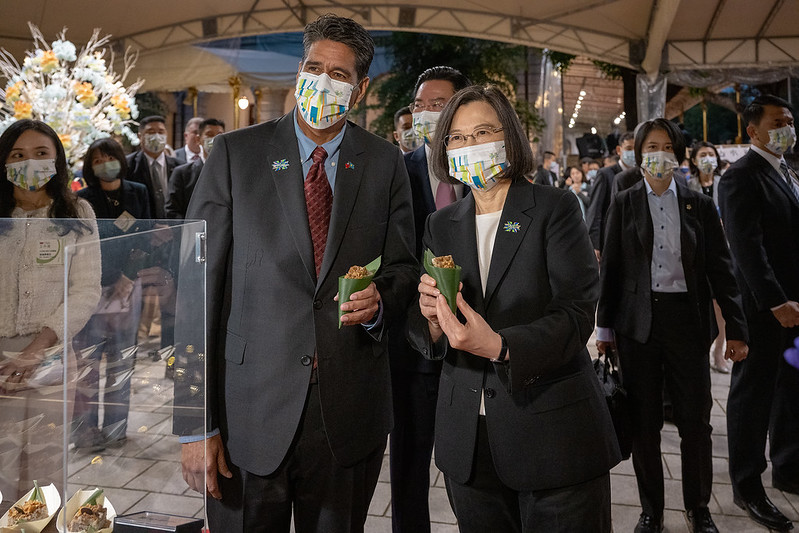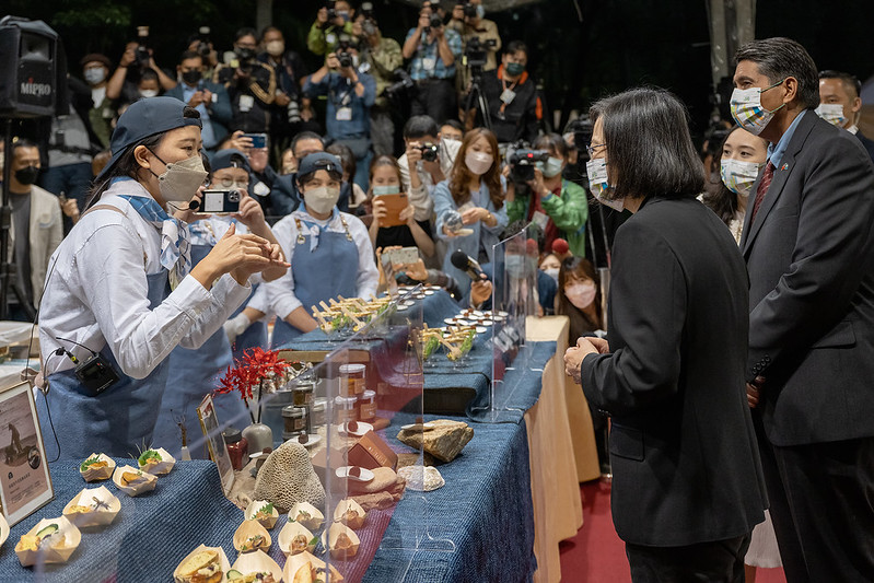 會場備有我國各地料理、清真料理、亞洲美食、西式美食,以及運用臺灣當季水果、農產及海鮮等在地食材重新詮釋的臺灣傳統美食。總統也與惠恕仁總統一同參觀啤酒頭釀造、李董偶貴手作美食坊及西尾半島物產店等特色攤位,並觀賞「舞蹈生態系創意團隊」、「優人神鼓」、「古牧特舞蹈劇場」及「新竹縣五峰鄉桃山國小合唱團」的共同演出,現場氣氛熱鬧歡愉,賓主互動熱絡。