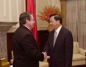 陳總統水扁先生今天下午在總統府接見國際殘障奧林匹克委員會主席史都華博士(Robert Steadward)伉儷,並代表中華民國政府與人民歡迎他們的遠道來訪。