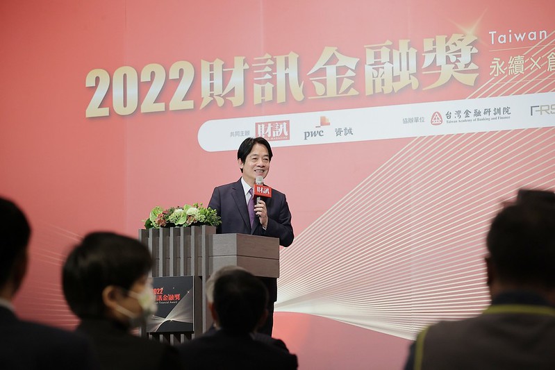 賴清德副總統今(13)日下午出席「2022財訊金融獎」頒獎典禮時表示,面對全球經濟成長衰退,金融業者應積極強化韌性,做好各種風險的評估與管控,並且適時調整投資組合;他也期盼金融業者支持政府淨零轉型政策,帶動其他產業一起邁向永續發展的目標。