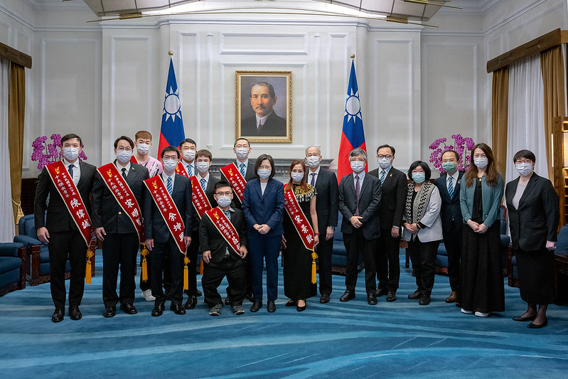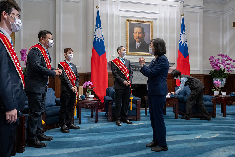 總統表示,徐世榮先生成立Skytech Gaming,產品銷售遍布全美各大賣場,連國際企業Google,都主動尋求合作。余坤興先生則率先使用機器學習方法,判讀癌症病理檢體,成功診斷多種癌症。他的研究成果,開創了病理AI的研究領域。