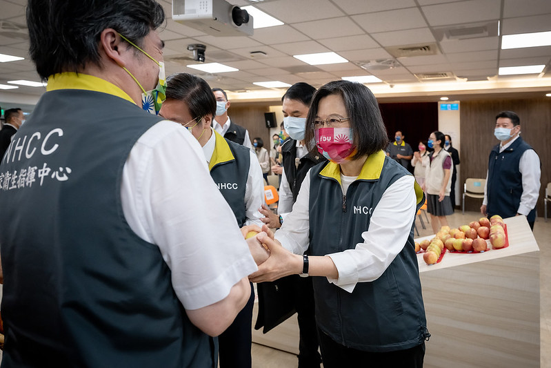 總統說,她要向指揮中心以及全國所有防疫工作夥伴,致上最高的敬意和感謝,感謝大家為臺灣拚了1000天。