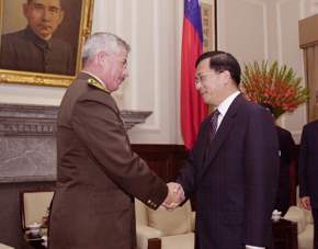 陳總統水扁先生今天下午接見瓜地馬拉共和國國防部長阿雷巴洛(Eduardo Arevalo Lacs)少將,除歡迎他首度訪華外,也對他在今年三月我國敦睦艦隊到訪瓜國期間所給予的熱誠接待及協助表達謝意。