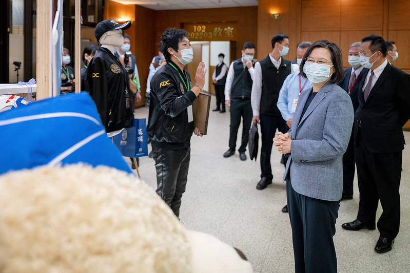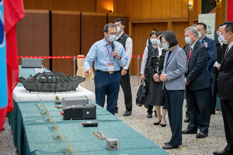 總統抵達後,首先視導漢翔公司和各家廠商成果展示暨認證軍品展示區。