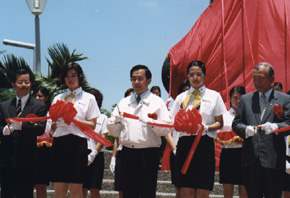 高雄縣余縣長自就任以來,就致力於保存美濃這客家文化的瑰寶,結合中央、省、縣的力量,經歷多年的努力,才有今天近千坪的「美濃客家文物館」的設置,阿扁相當肯定余縣長的施政方向以及對美濃客家文化的高度尊重。