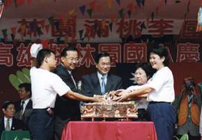 在新世紀的第一年,欣逢林園國小建校一百週年校慶,這可以說是林園鄉、也是高雄縣的大事,阿扁總統很高興、也很榮幸有機會參加。林園國小創立在民國前十年,百年來,為了造就一代一代的孩子而努力,我們要藉這個機會感謝學校裡現任和歷任的教職員工,也要向在座各位校友與各位鄉親恭喜你們擁有這麼一個美好而長久的學校,因為林園國小是我們高雄縣林園地區最古老的學校,伴隨著大部分的林園人度過童年,今天全校的親、師、生還有林園鄉各界及畢業校友,從海內外回來歡聚一堂,為母校慶生,令人十分感動。