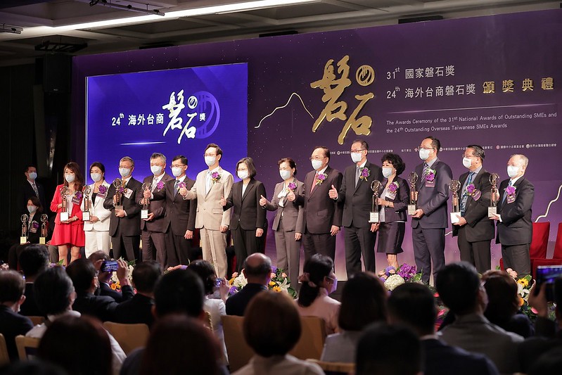蔡英文總統今(8)日下午出席「第31屆國家磐石獎暨第24屆海外臺商磐石獎頒獎典禮」時,肯定中小企業是臺灣經濟成長和社會安定不可或缺的力量。並表示,我們不只要協助中小企業因應淨零碳排、數位轉型的未來趨勢,更要為中小企業注入更多創新和在地的發展元素,打造更多具國際競爭力的隱形冠軍,讓臺灣中小企業能在全球發光發熱。