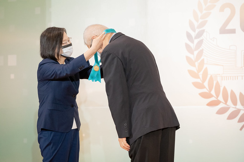 隨後,總統逐一頒授5位院士「證章及證書」,並與現場貴賓一同啟動焦點儀式。