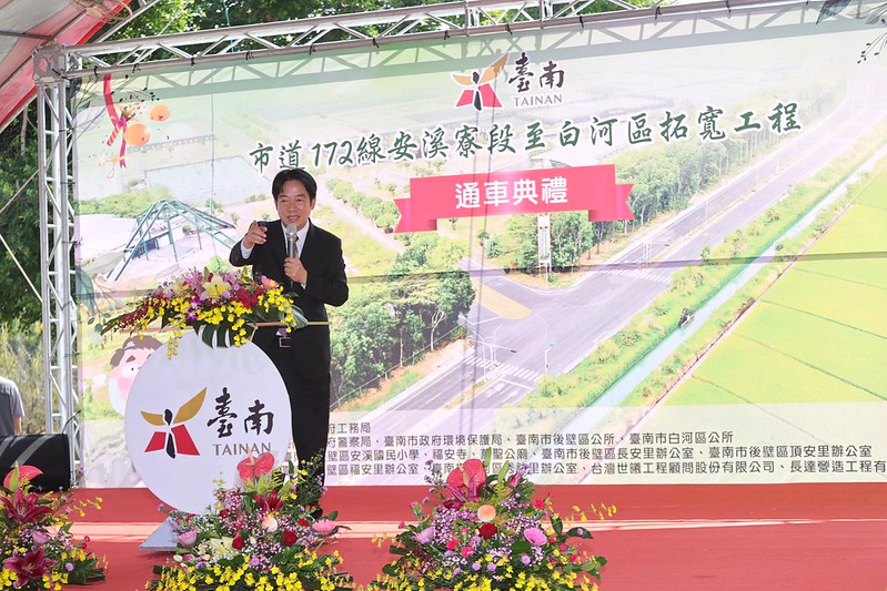 賴清德副總統今(11)日上午出席「台南市道172線安溪寮段至白河區拓寬工程通車典禮」,感謝相關單位對拓寬工程的辛勞與付出,期盼所有鄉親未來在使用這條道路時,都可以平安順利,並期盼鄉親給予市府團隊更多的鼓勵與肯定,讓未來每一項建設都能成功,造福臺南的地方發展。