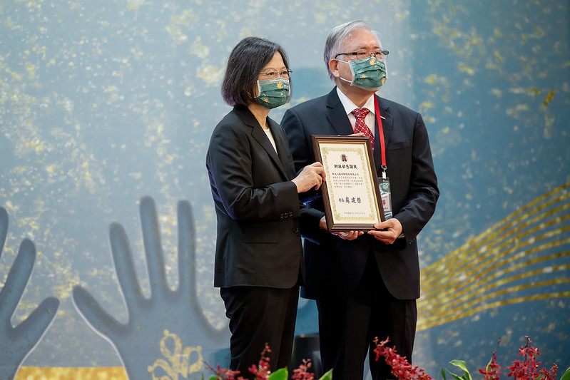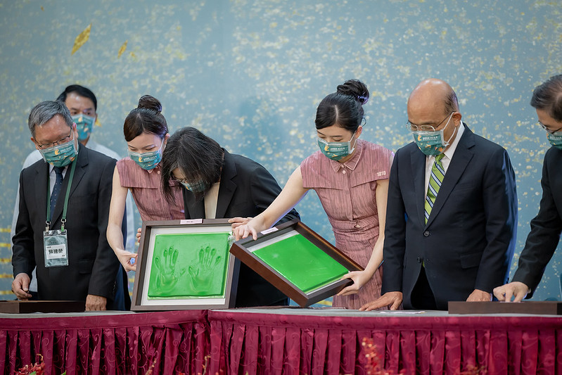 隨後,總統頒發感謝狀予22位企業受獎代表,並與現場貴賓一同進行壓印紀念手模。