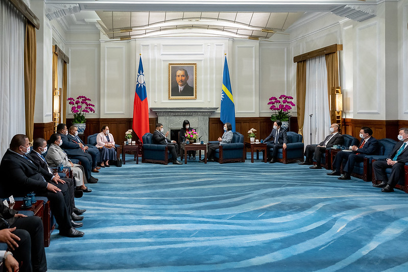 繼以軍禮歡迎諾魯共和國總統昆洛斯(Russ Joseph Kun)伉儷後,蔡英文總統今(15)日上午偕同賴清德副總統,與昆洛斯總統雙邊會晤。總統強調,臺灣與諾魯在潔淨能源、數位發展及教育文化等領域的合作,均已獲致成果。她相信未來,臺諾雙邊定能繼續深化各方面的合作,並且開展更多有意義的計畫,為兩國人民帶來更大的福利。