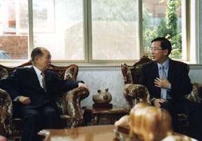 陳總統水扁先生今天前往苗栗頭份拜會總統府資政、李前副總統元簇先生,向他請益國事。
