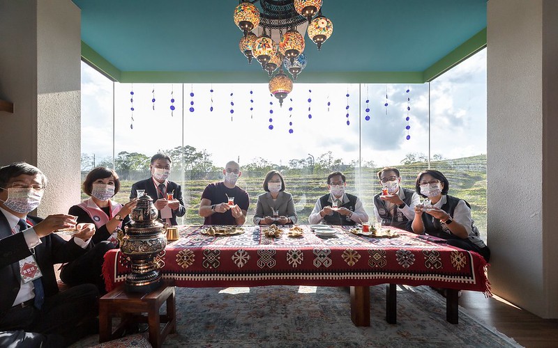 總統指出,龍潭是茶葉重鎮,更有著「綠金產業」的美名。「臺灣客家茶文化館」館內的特展,有六國茶室、客家四季,還有客家劇《茶金》的特展,令人非常期待。