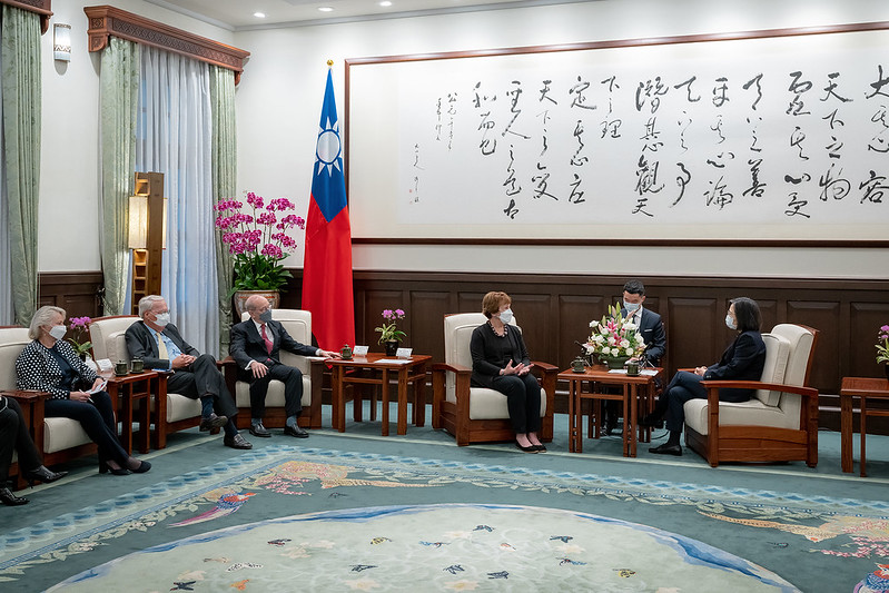 艾略特會長認為,誠如總統所言,對話是維持區域和平穩定及繁榮最好的方式,我們非常榮幸能與總統及臺灣的同仁們一起進行對話。