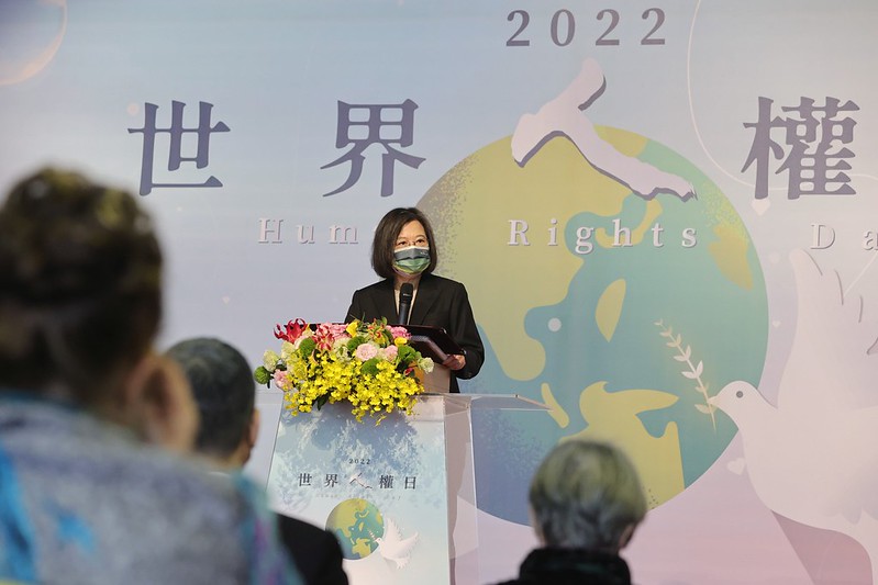 蔡英文總統今(10)日上午出席「『2022年世界人權日』典禮」時指出,推動轉型正義的意義,正是因為我們相信,記得歷史、反省過去能夠讓我們不要重蹈覆轍,也更能夠進一步團結社會、鞏固民主,讓臺灣不斷進步。她強調,轉型正義的工作會由行政院統合督導各部會持續進行下去。