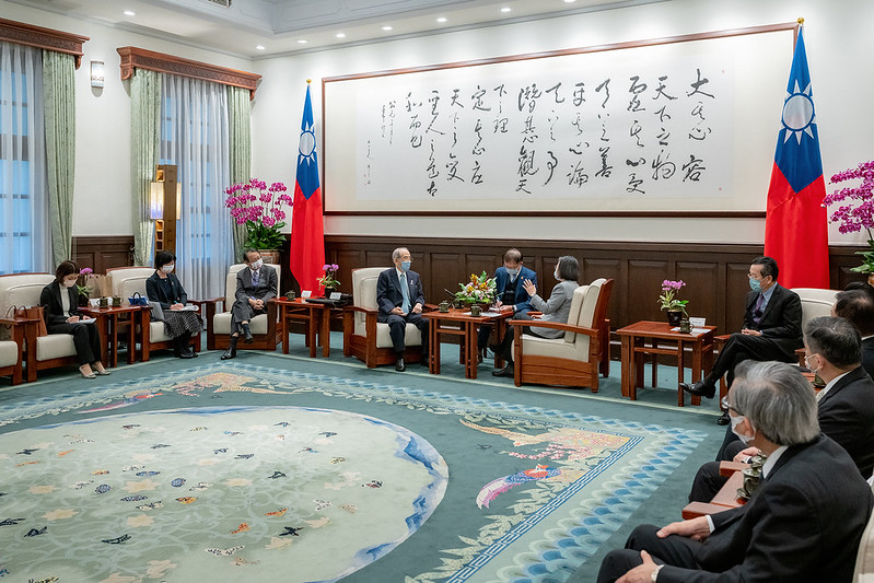 總統感謝日本政府,多次在各個國際場域支持臺灣的國際參與,以及強調臺海和平的重要性。未來,臺灣將持續爭取參與國際組織,以及加入「跨太平洋夥伴全面進步協定」(CPTPP)等區域經貿合作機制,希望日本能夠持續支持臺灣,一起促進區域的和平繁榮發展。
